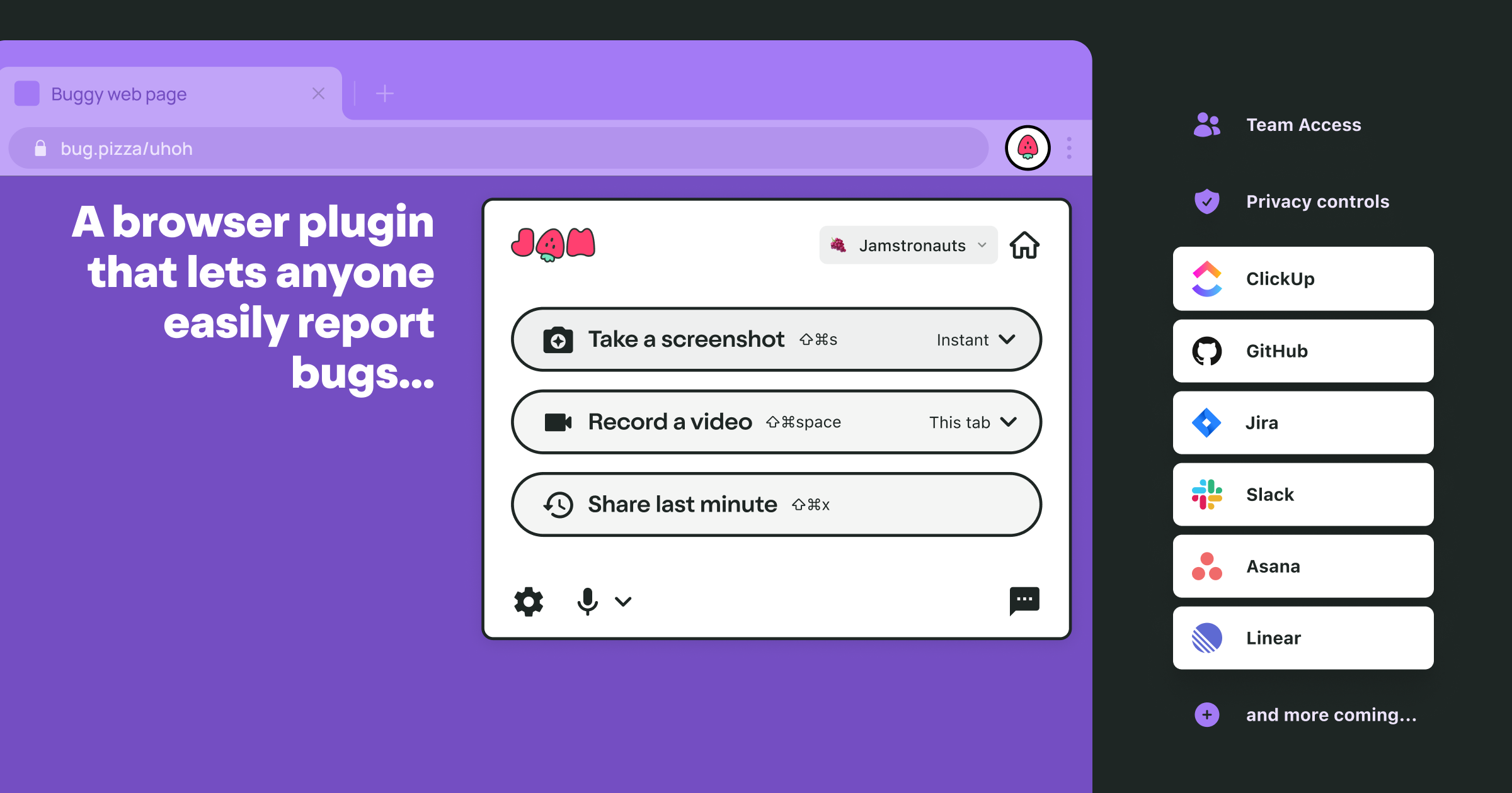 Meet the productivity tool we’re building here at Jam, used by 10,000+ to ship high-quality software, faster. Jam makes it extremely quick to capture and report bugs without context switching, and the tickets you create with Jam automatically include all the console logs/network requests/info engineers need. Say goodbye to frustrating bug reports and hello to a supercharged bug reporting workflow with one of the highest rated bug tracking tools!
