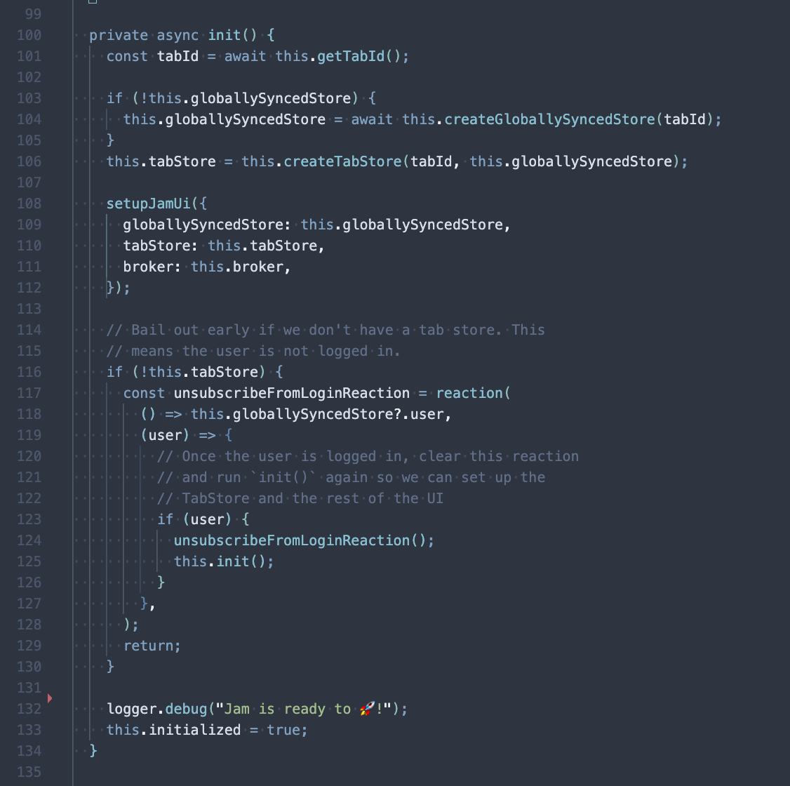 tabStore(which held auth data), and callthis.init()on line 125, when the auth data propagated in shortly after. - When the