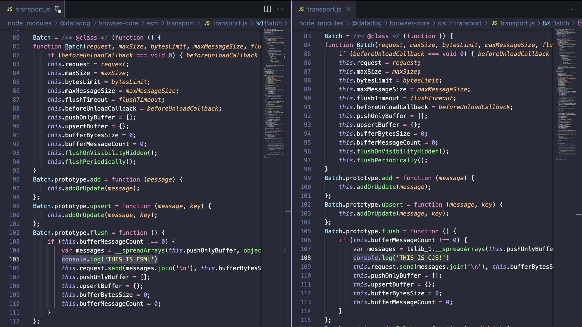 But first, we need to figure out what version of the file we're modifying! For this file, there's a cjs and an esm version. Easiest way to figure out which one we're importing? Just sprinkle some log statements in, clear webpack's cache, and reload!